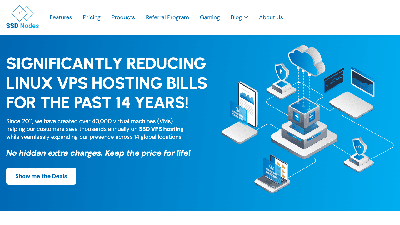 SSDNodes 成立于 2011 年,是一家典型的美国本土 VPS 服务商,主营业务非常聚焦——虚拟专用服务器,没有复杂的产品线,也不太做”云生态叙事”。从它的官网结构和套餐设计就能看出来,这是一家明显更偏向工程师和技术用户的服务商,而不是面向小白用户的”傻瓜云”。